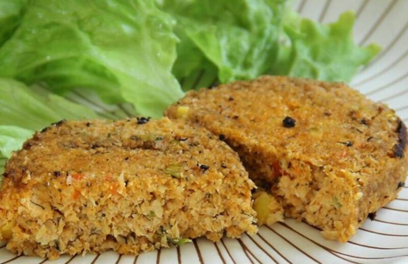 Steak végétarien maison : pois chiche, boulgour, oignons, ail des ours, farine, curcuma, épices massala, sel au curry, poivre, cumin.